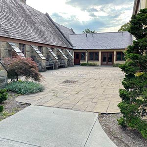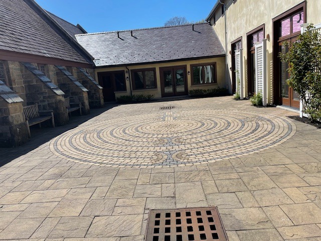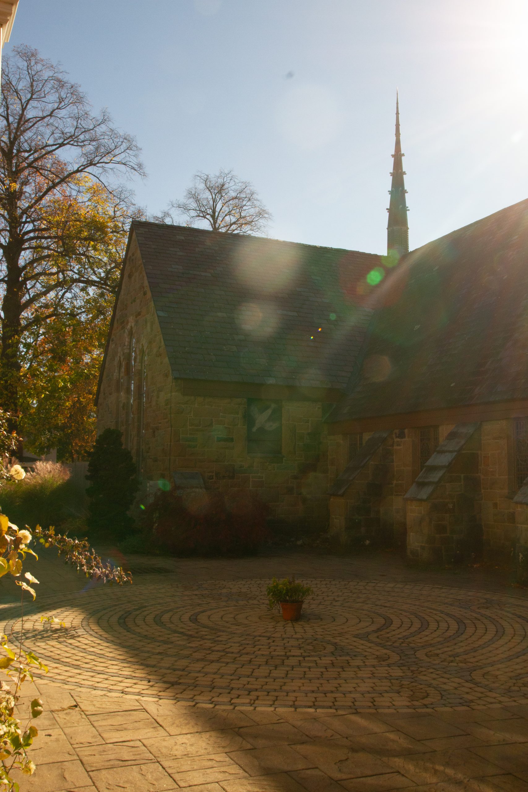 One unique aspect of the grounds at St. Stephen’s, in addition to our gardens, is the labyrinth in the heart of the campus. The entrance to the labyrinth is in our courtyard, situated between the library and the fellowship hall. Our labyrinth is an adaptation of the millennia-old classical type. Unlike a maze, a labyrinth has only one path in and out; there are no tricks or dead ends. The path winds from the exterior to the center; the walk to the center is intended to quiet and calm the mind. The walk back from the center can evoke the return to one’s life. Walk it with an open mind and an open heart!